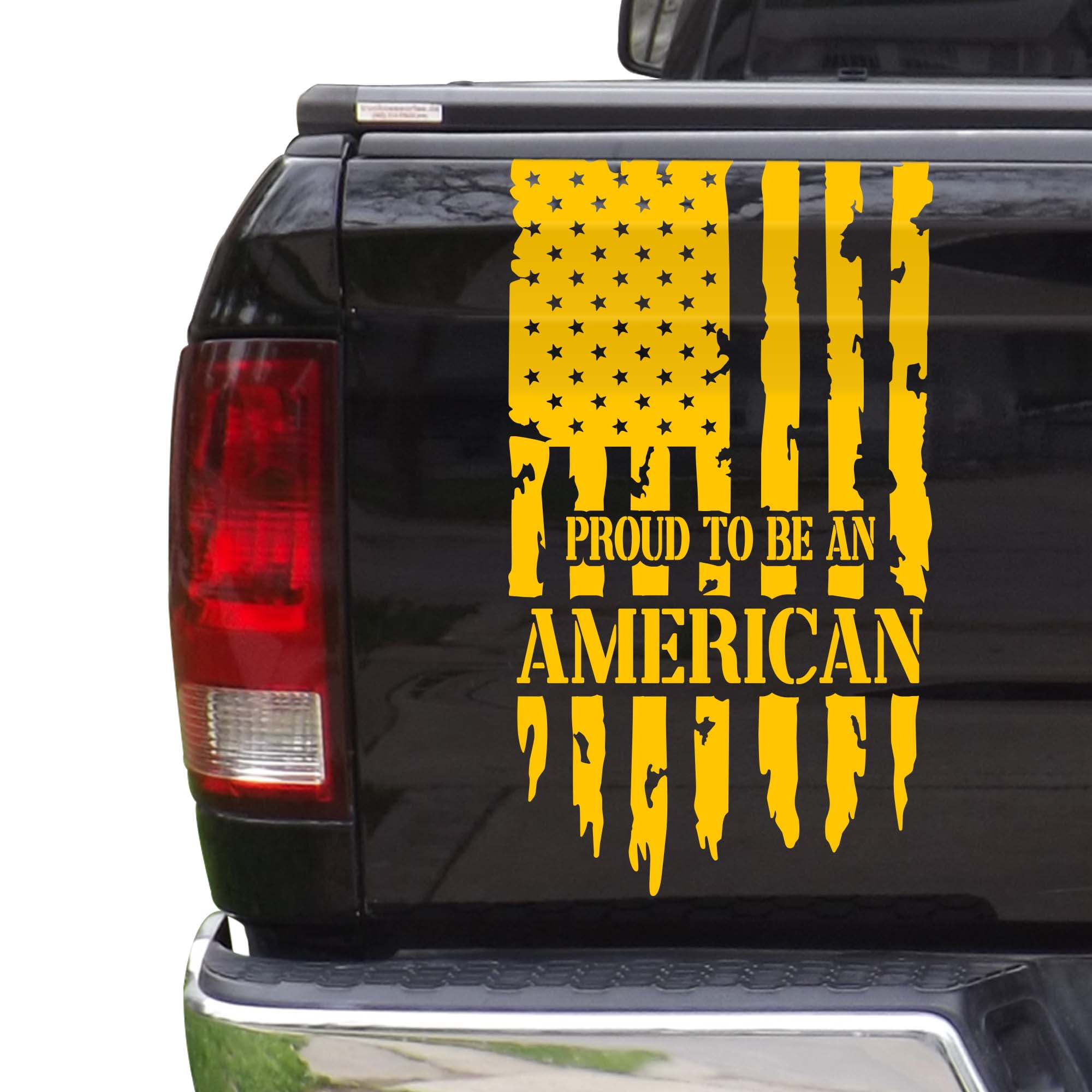 Proud To Be An American Distressed American Usa Us Flag Truck Tailgate Vinyl Decal Compatible With Most Pickup Trucks Rear Car Sticker 11 X 20 Yellow Walmart Com